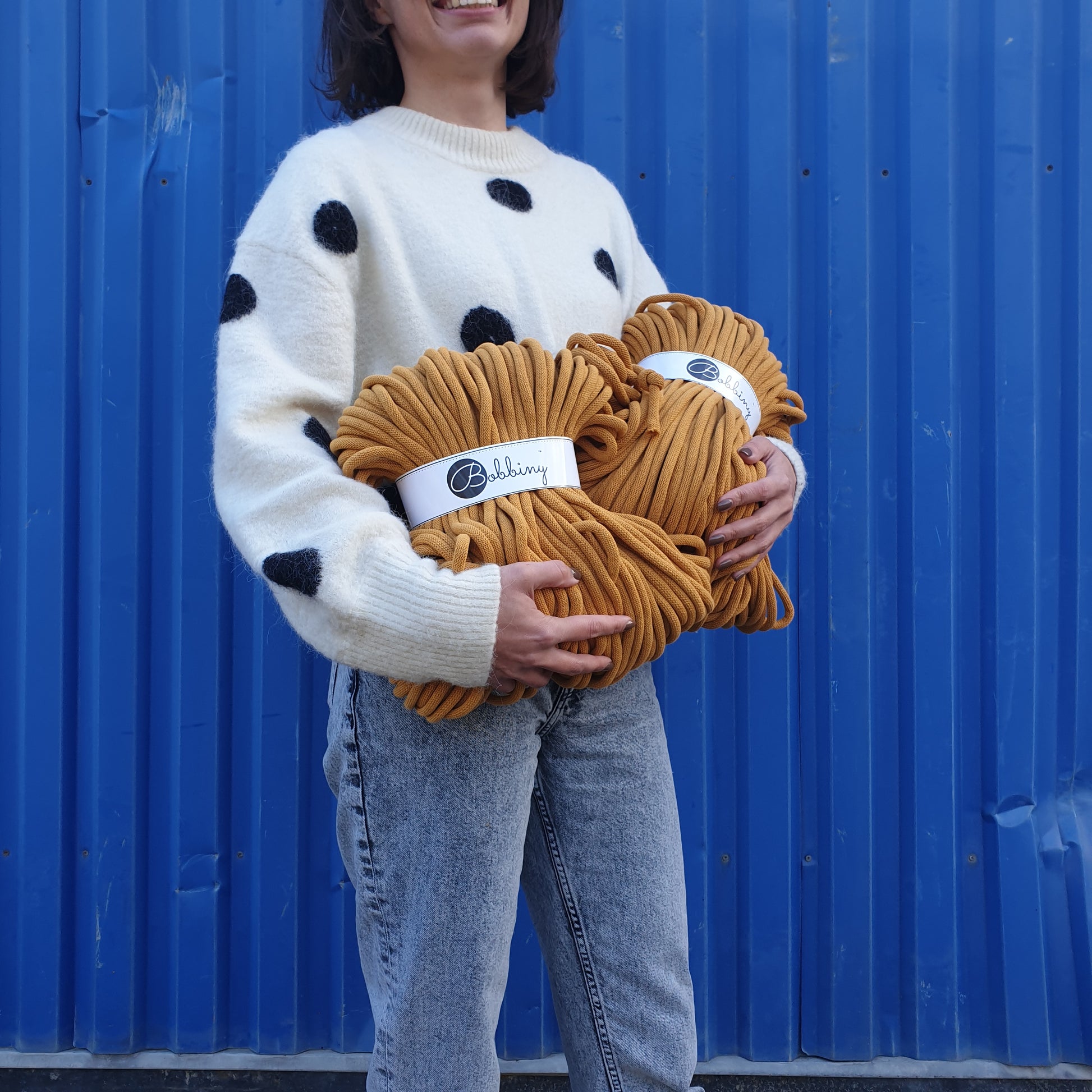 Jumbo 9mm Cotton Cord is a soft, flexible and durable cord. It's perfect alternative for t-shirt yarn. It helps create project with beautiful jumbo stitch.