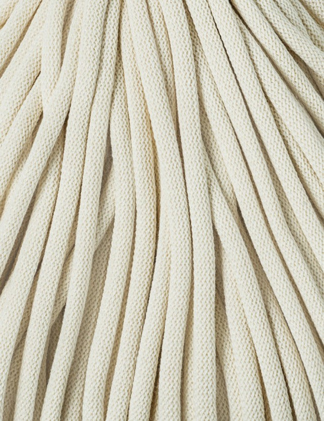 Jumbo 9mm Cotton Cord is a soft, flexible and durable cord. It's perfect alternative for t-shirt yarn. It helps create project with beautiful jumbo stitch.