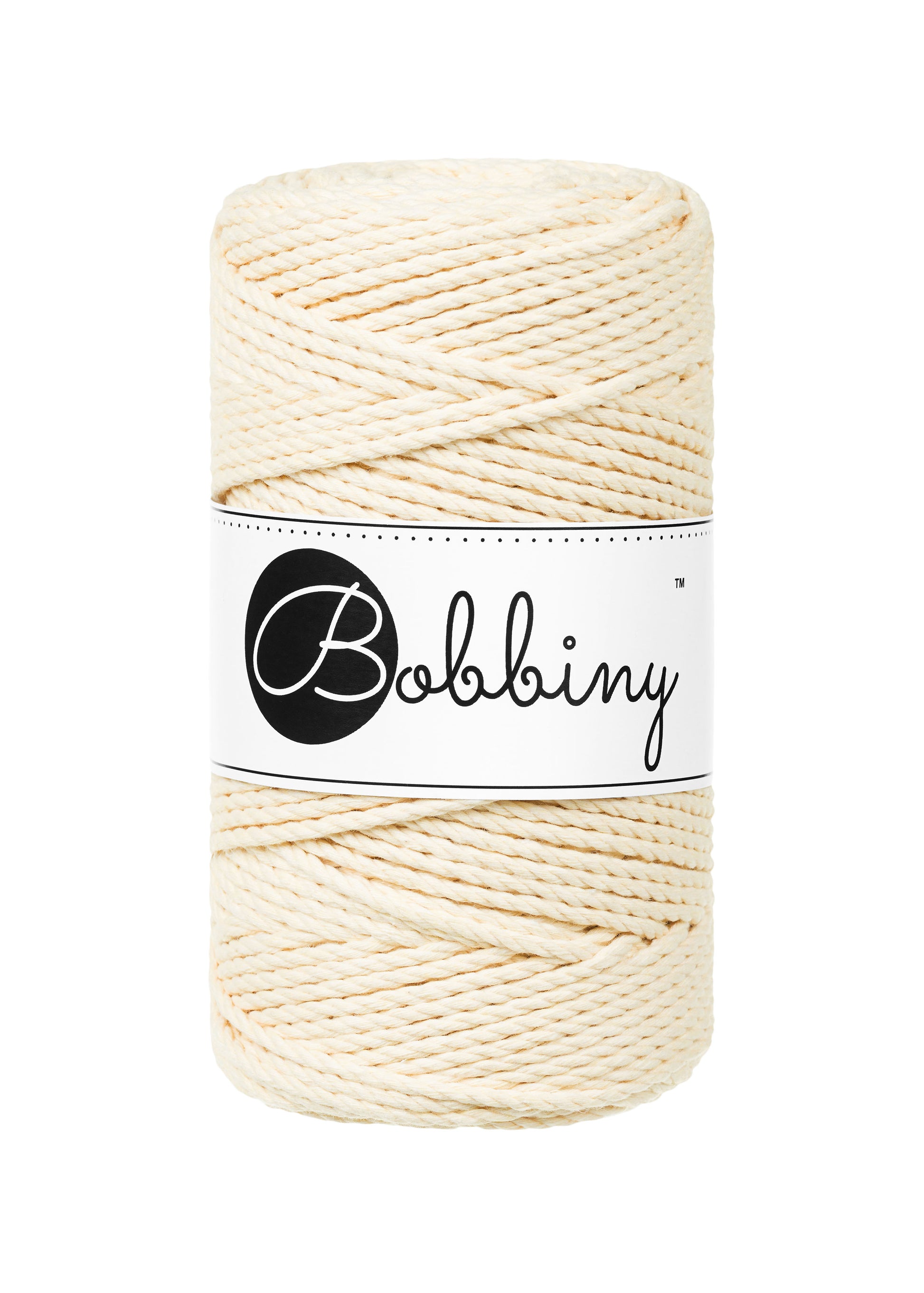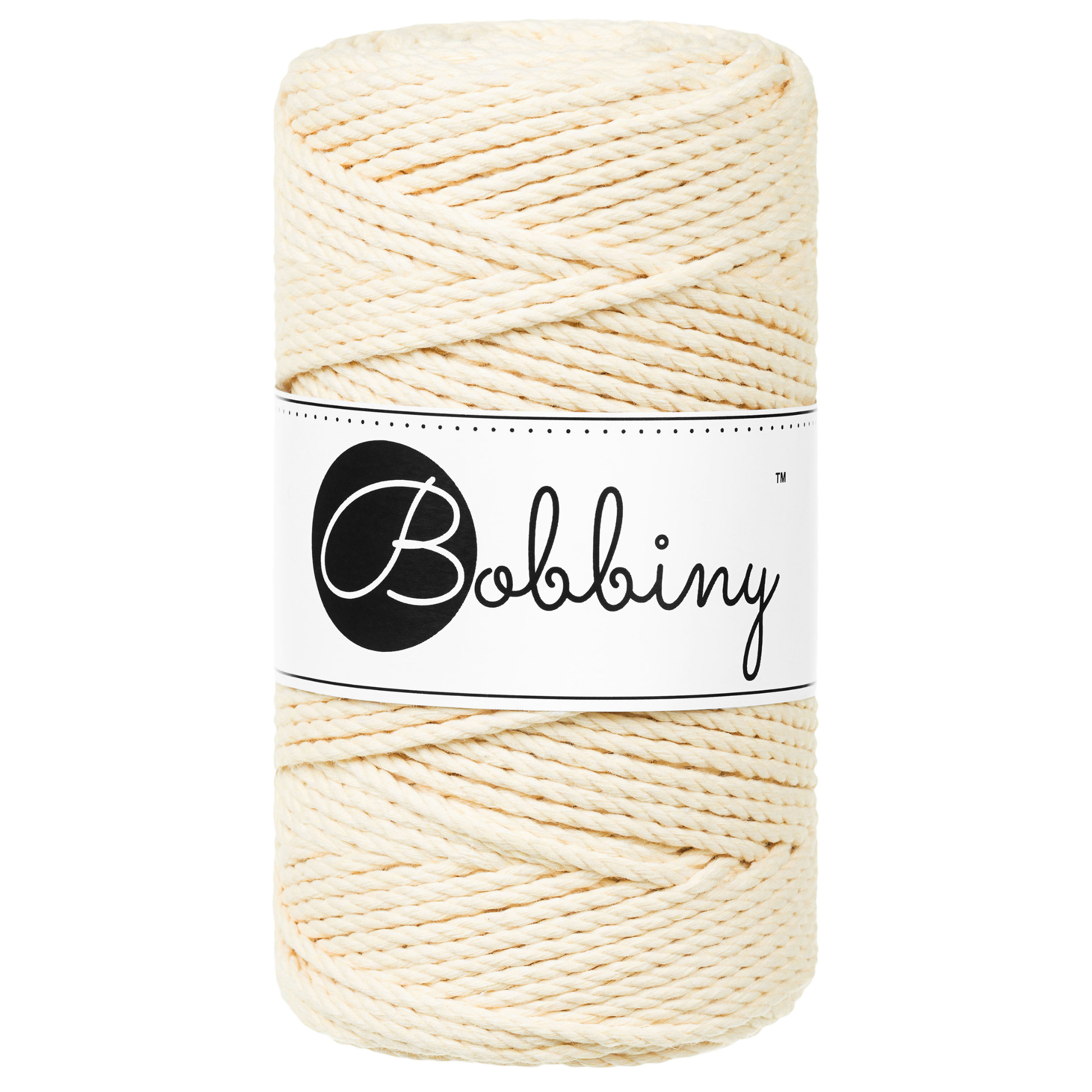 The 3mm 3ply Macramé Rope is a triple-twist cotton cord composed of 60 single threads twisted with three 20-thread parts. It is perfect for macramé, weaving, or any fiber art.