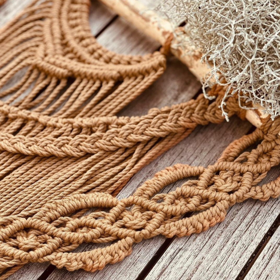 It is perfect for macramé, weaving or any fiber art. It is super soft, smooth, knots beautifully and gives amazing, twirly fringes and tassels. Thanks to its twisted structure it is firm and easy to work with.