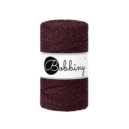 A limited edition cord in a deep Burgundy shade with a delicate golden thread. This unique combination of rich color and subtle shimmer is perfect for elegant projects, adding a touch of sophistication.