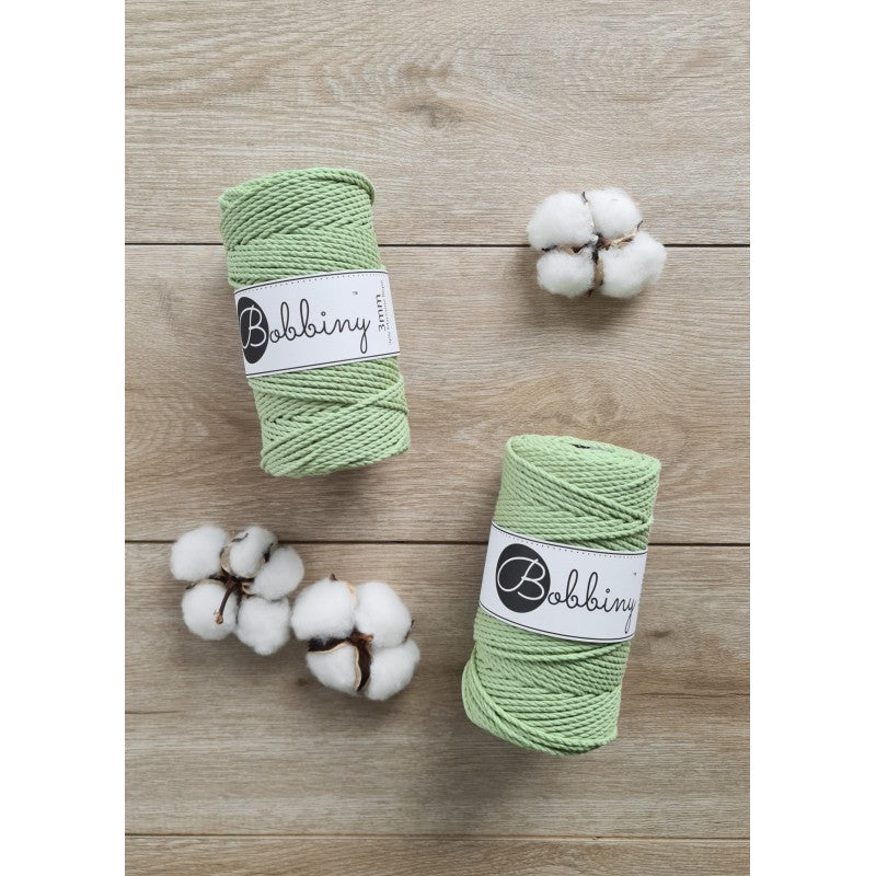 The 3mm 3ply Macramé Rope is a triple-twist cotton cord composed of 60 single threads twisted with three 20-thread parts. It is perfect for macramé, weaving, or any fiber art.