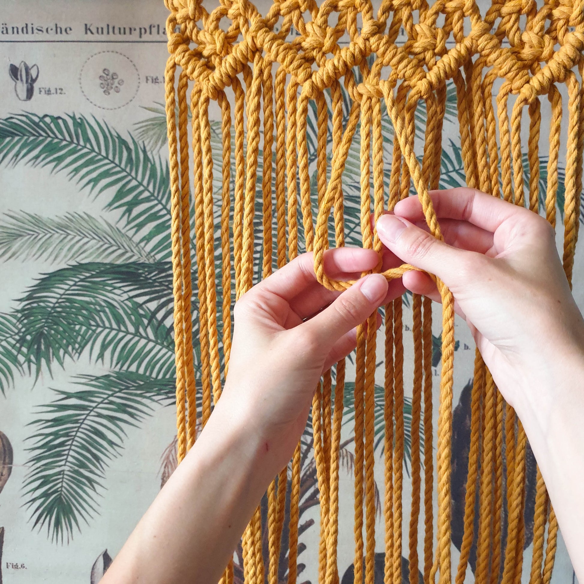 It is perfect for macramé, weaving or any fiber art. It is super soft, smooth, knots beautifully and gives amazing, twirly fringes and tassels. Thanks to its twisted structure it is firm and easy to work with.