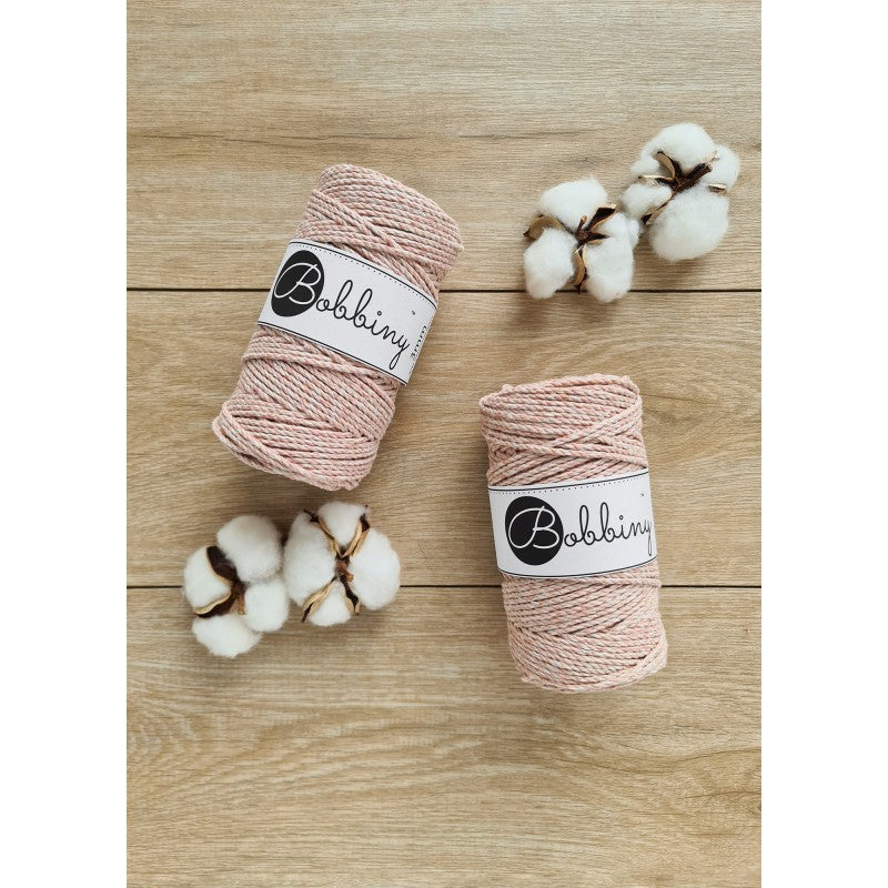 The new 3mm 3ply Macramé Rope is a triple-twist cotton cord composed of 60 single threads twisted with three 20-thread parts. It is perfect for macramé, weaving, or any fiber art.