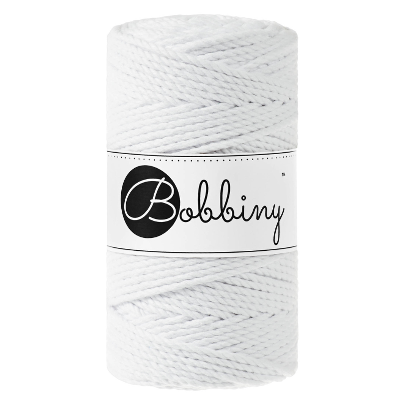 The 3mm 3ply Macramé Rope is a triple twist cotton cord composed of 60 single threads twisted with three 20-thread parts.