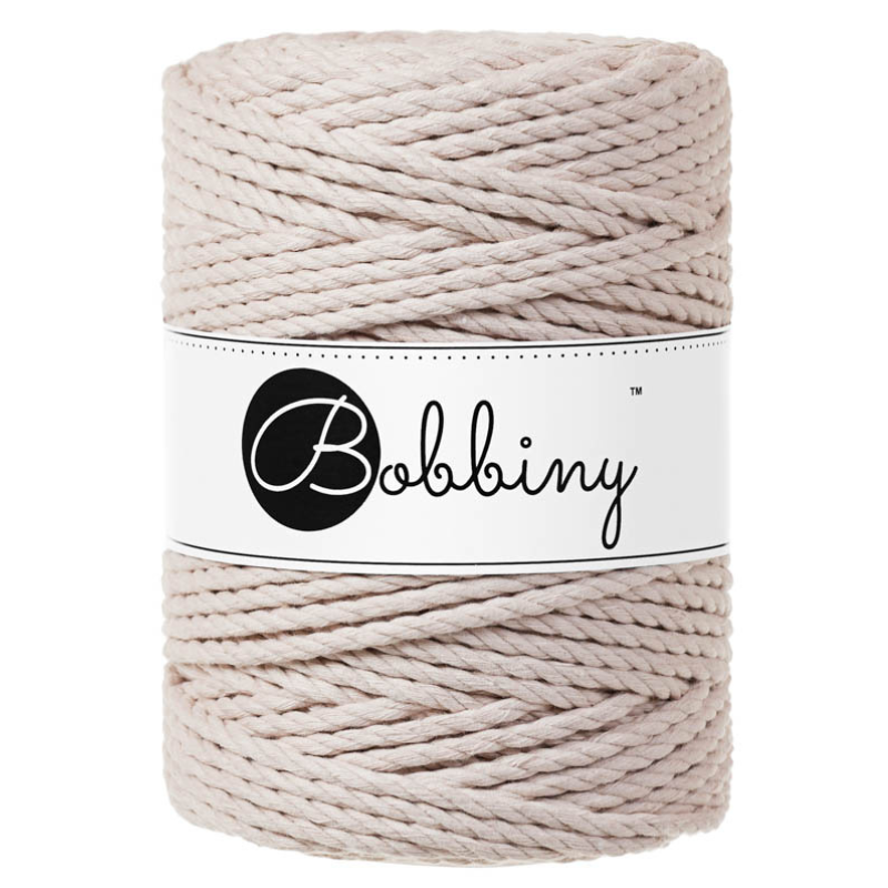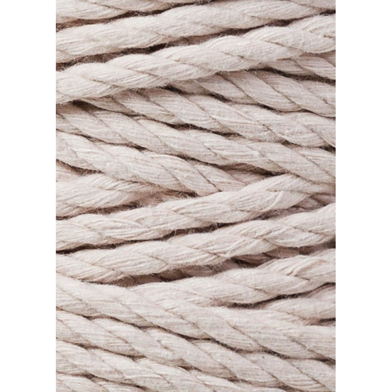 The 5mm 3ply Macramé Rope is a triple twist cotton cord composed of 120 single threads twisted with three 40-thread parts. It is perfect for macramé, weaving or any fiber art.