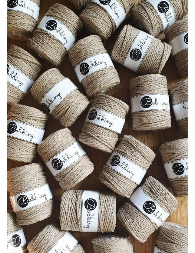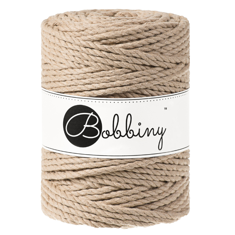 The 5mm 3ply Macramé Rope is a triple twist cotton cord composed of 120 single threads twisted with three 40-thread parts. It is perfect for macramé, weaving or any fiber art.