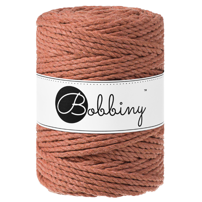 The 5mm 3ply Macramé Rope is a triple twist cotton cord composed of 120 single threads twisted with three 40-thread parts. It is perfect for macramé, weaving or any fiber art.