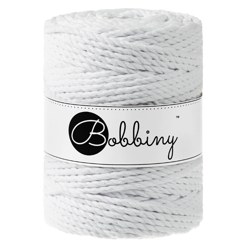 The 5mm 3ply Macramé Rope is a triple twist cotton cord composed of 120 single threads twisted with three 40-thread parts. It is perfect for macramé, weaving or any fiber art.